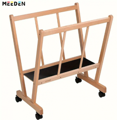 Mide 68,58 cm de largo x 53,34 cm de profundidad x 76,2 cm de alto, con una base de goma antideslizante de 21,6 cm de ancho. Admite lienzos de hasta 119,38 cm. Tiene 4 ruedas duraderas de plástico duro con frenos y una estructura extremadamente rígida que evita que vuelque.
